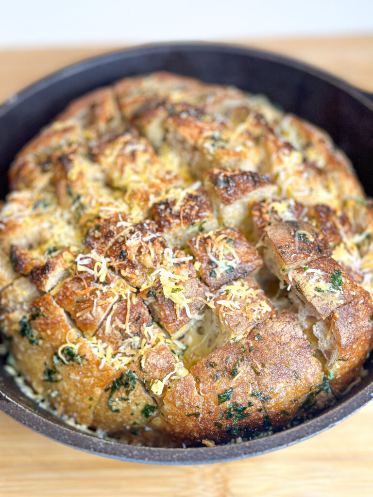 Do you have a sourdough loaf that needs to be used up ASAP and you are not sure what to do with it? This cheesy sourdough pull apart bread recipe is the perfect way to do so! It packs so much flavor, not to mention it is so comforting to eat. Serve this as an appetizer at any event, holiday, or as a school lunch for the kids.