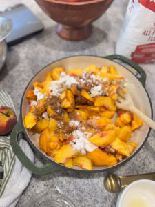 - Transfer the mixture to your prepared pan. This peach filling will create its own syrup as the whole thing bakes.