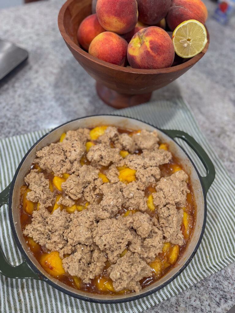 - 6 cups of peaches, peeled and sliced (fresh or canned peaches)