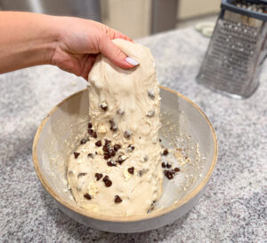 - Mini chocolate chips get perfectly distributed in the third stretch-and-fold