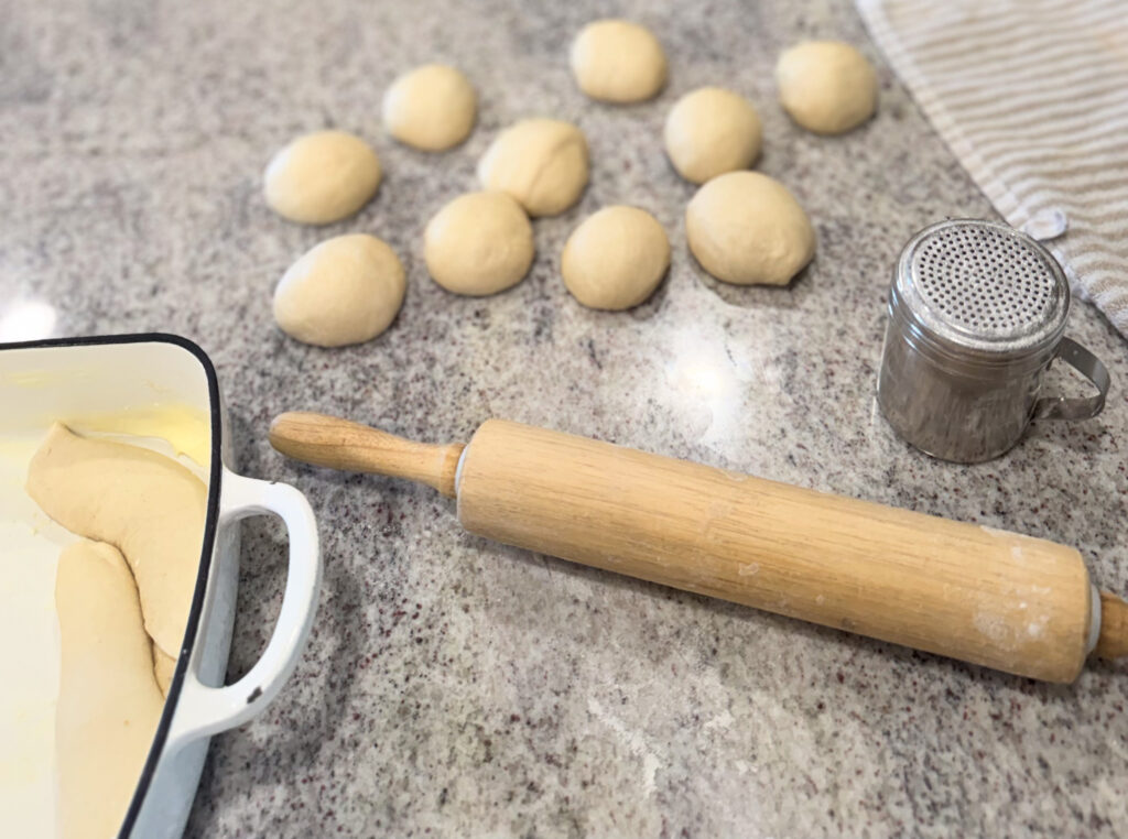 What really makes this bread special is how it’s shaped. Instead of pinching dough closed like traditional buns, each piece is rolled gently and placed seam-side down. During the second rise, the dough seals itself, which gives you a smooth, bakery-style top of the dough without any fuss.